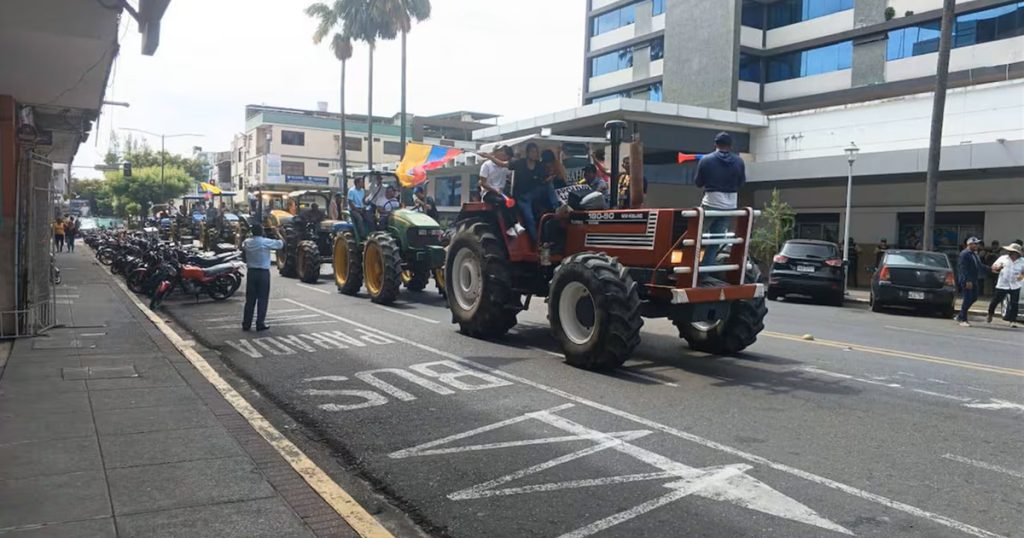 A bordo de tractores y portando pancartas, los productores denunciaron que el precio actual que reciben por su cosecha es “insostenible”. Según los manifestantes, el quintal de arroz se está pagando apenas a 21 dólares, una cifra que no alcanza a cubrir los elevados costos de producción, especialmente frente a insumos como la urea, cuyo costo supera los 40 dólares.