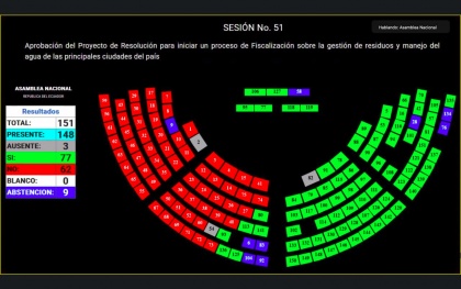 Con 77 votos afirmativos, el Pleno de la Asamblea Nacional aprobó una resolución para iniciar un proceso de fiscalización sobre la gestión de residuos y el manejo del agua en las principales ciudades del país.