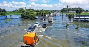 El agua supera los 30 centímetros en el sector Ecuavegetal, de la vía Babahoyo-Jujan. Como