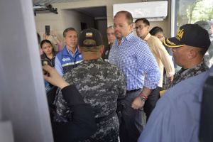 El ministro del Interior John Reimberg, junto a funcionarios de la Empresa Pública de Seguridad