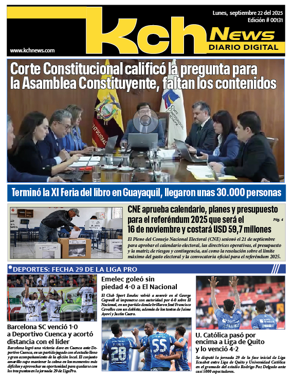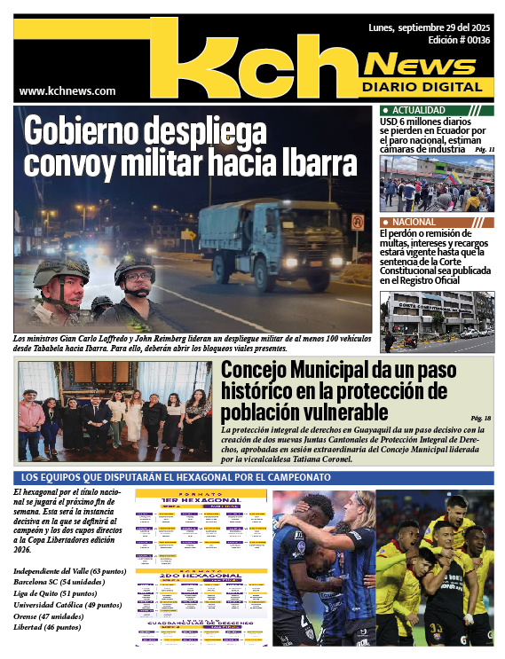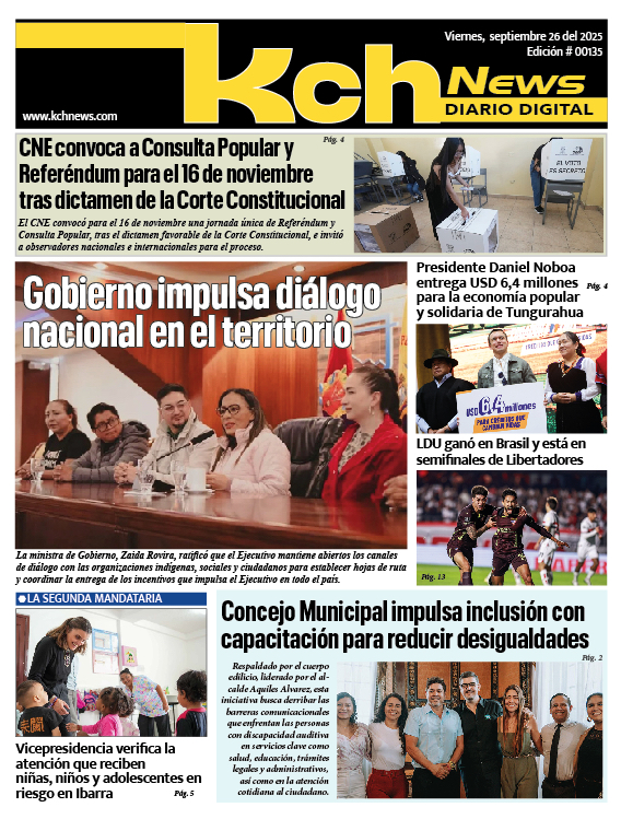 EDICIONES Descarga las últimas ediciones completa de Kch News en formato PDF. LUNES 6 DE OCTUBRE DEL 2025 Edición: 141 VIERNES 3 DE OCTUBRE DEL 2025 Edición: 140 JUEVES 2 DE OCTUBRE DEL 2025 Edición: 139 MIERCOLES 1 DE OCTUBRE DEL 2025 Edición: 138 MARTES 30 DE SEPTIEMBRE DEL 2025 Edición: 137 LUNES 29 DE SEPTIEMBRE DEL 2025 Edición: 136 VIERNES 26 DE SEPTIEMBRE DEL 2025 Edición: 135 JUEVES 25 DE SEPTIEMBRE DEL 2025 Edición: 134 MIERCOLES 24 DE SEPTIEMBRE DEL 2025 Edición: 133 MARTES 23 DE SEPTIEMBRE DEL 2025 Edición: 132 LUNES 22 DE SEPTIEMBRE DEL 2025 Edición: 131 VIERNES 19 DE SEPTIEMBRE DEL 2025 Edición: 130