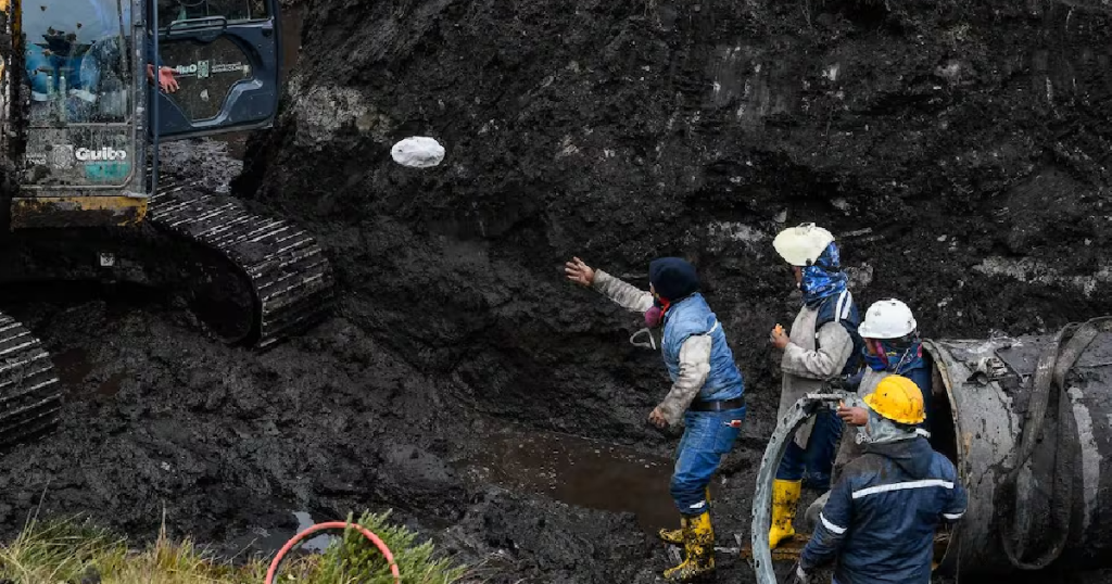 Setenta personas trabajan en el sector de La Mica, en el páramo del Antisana, para restablecer el suministro del líquido vital a los 205 barrios afectados por la rotura de la tubería a causa del deslizamiento de tierra del pasado 9 de julio.