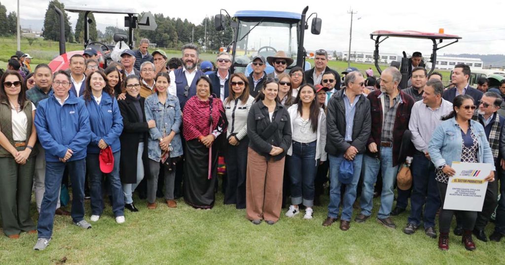 También 50 productores del cantón Mejía recibieron kits agrícolas parcialmente subvencionados para fortalecer la producción de papa; se otorgó 26 títulos de propiedad de tierras, y productores de Píntag obtuvieron los planos de infraestructura hidráulica.