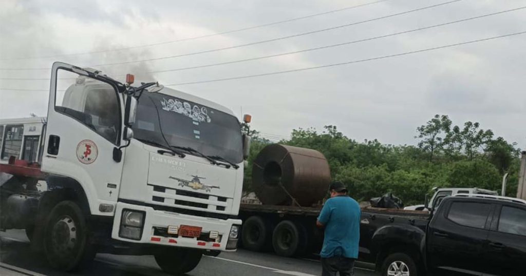 Un vehículo pesado, tipo plataforma, se incendió en la vía Perimetral, la tarde de este jueves 29 de enero.