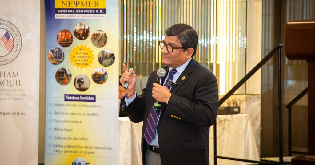 Como conclusión, Jaramillo resaltó a los socios de Amcham Guayaquil la proyección de duplicar en cinco años (al 2030) las exportaciones no petroleras ecuatorianas a Estados Unidos y llegar a $ 13.000 millones , en productos tradicionales, no tradicionales, nuevos productos, agroindustria y minería (cobre y oro).