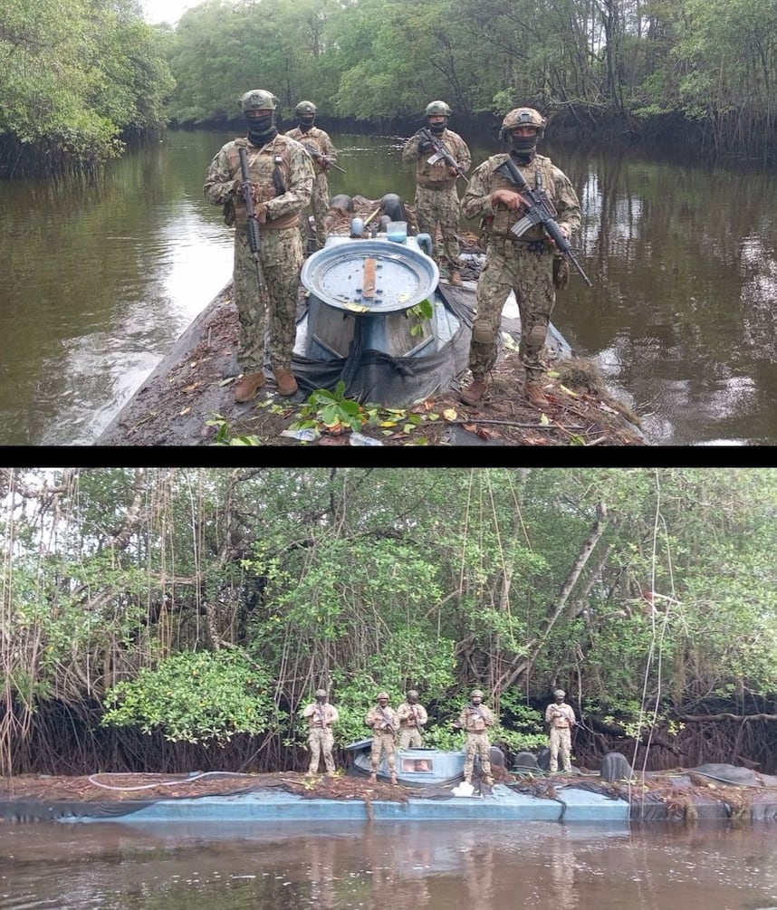 Además, en el área se encontraron seis lanchas rápidas, siete motores fuera de borda, 25 tanques con un total de 1.375 galones de diésel, 120 tanques de combustible vacíos, equipos de navegación y una escopeta.