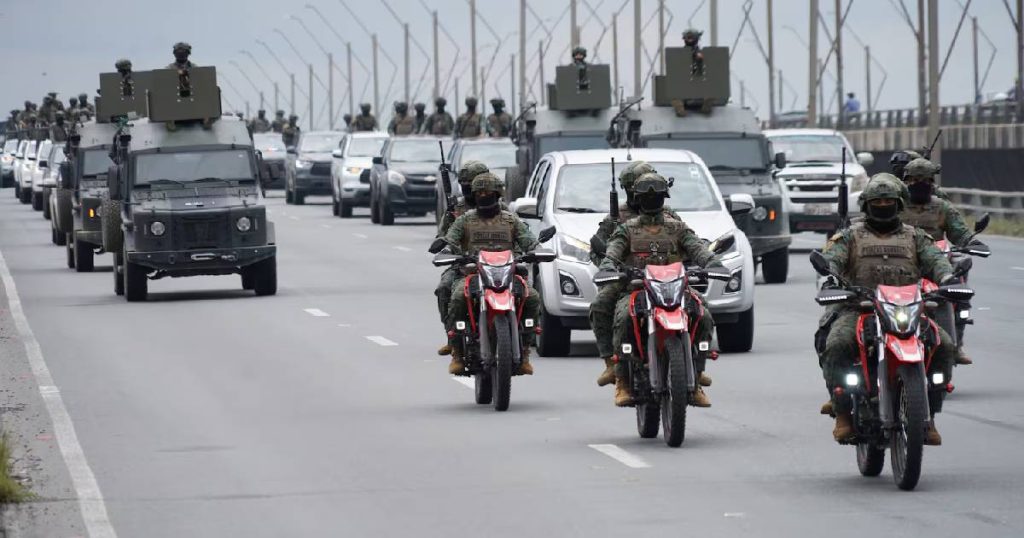 Tanquetas y camionetas con personal fuertemente armado salieron desde la avenida Pedro Menéndez Gilbert como parte de las acciones para reforzar la seguridad en esta localidad en el marco del estado de excepción vigente y antes de la medida estipulada en el Decreto Ejecutivo 329.